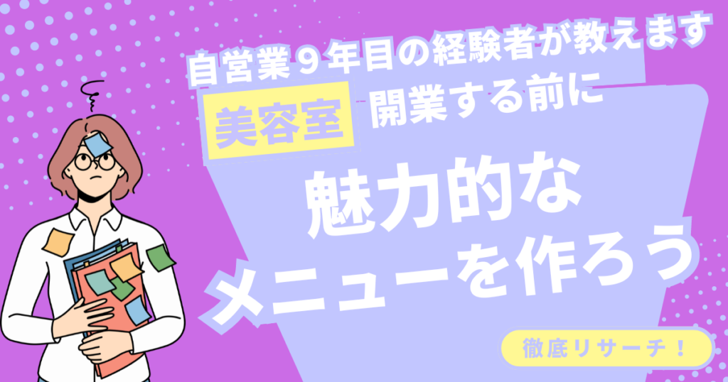 お店のコンセプトやメニューを決めよう openmiel 店舗の準備ができてきたらまだまだやることがたくさんあります。 メニューの金額設定や広告、商材決めなど… しっかり準備していきましょう。 ステップ1.必要なものリスト さっそくやってみる ステップ1はこちらから ステップ2.メニューを決めよう さっそくやってみる ステップ2はこちらから ステップ3.ホームページを自分で作ってみよう さっそくやってみる ステップ3はこちらから